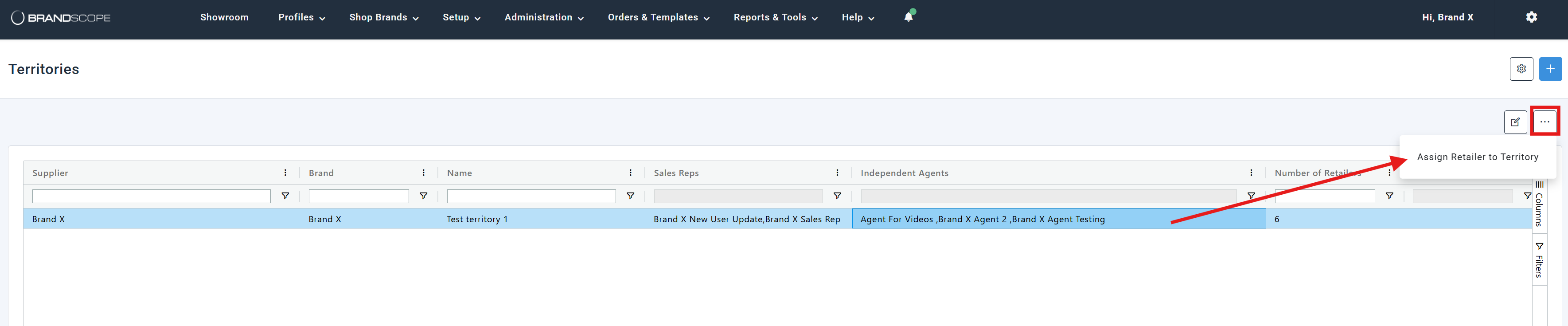 Within Brandscope, Agents are connected to Retailers through the Territories feature. Suppliers can manage this via SETUP > TERRITORIES.